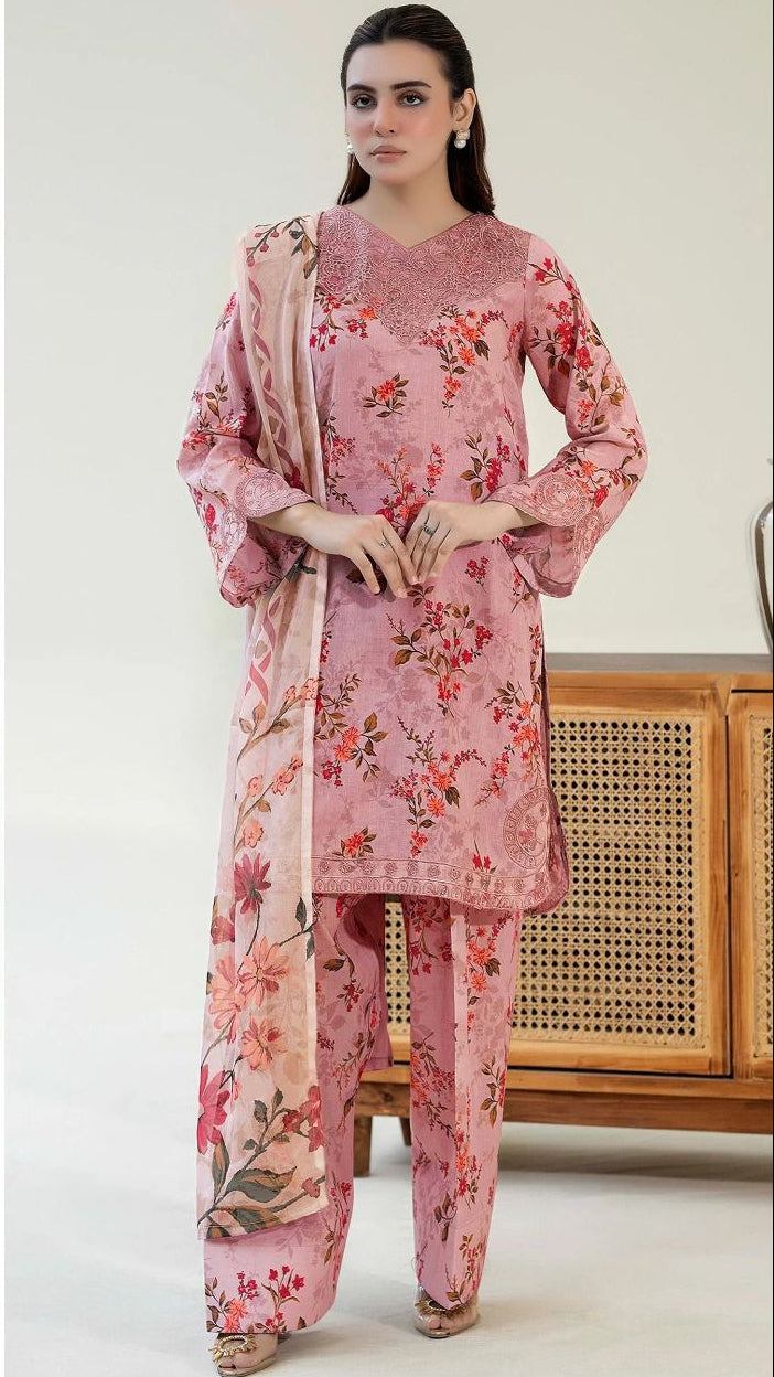 BRQ -LAWN Digital Print 3pc -Voil 4 Side Embroidered Dupatta.