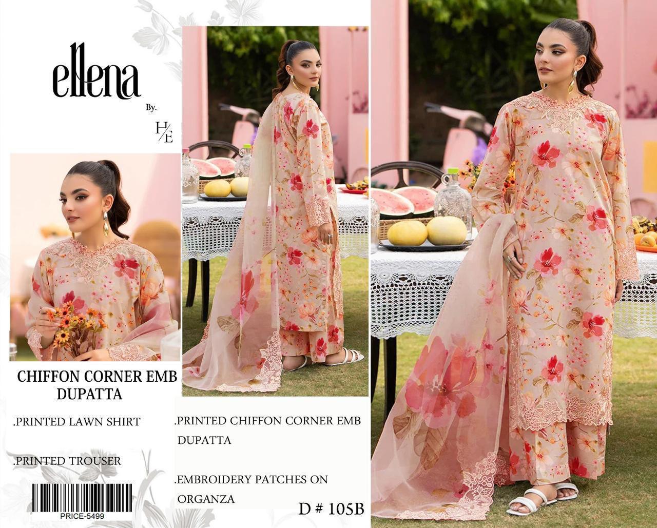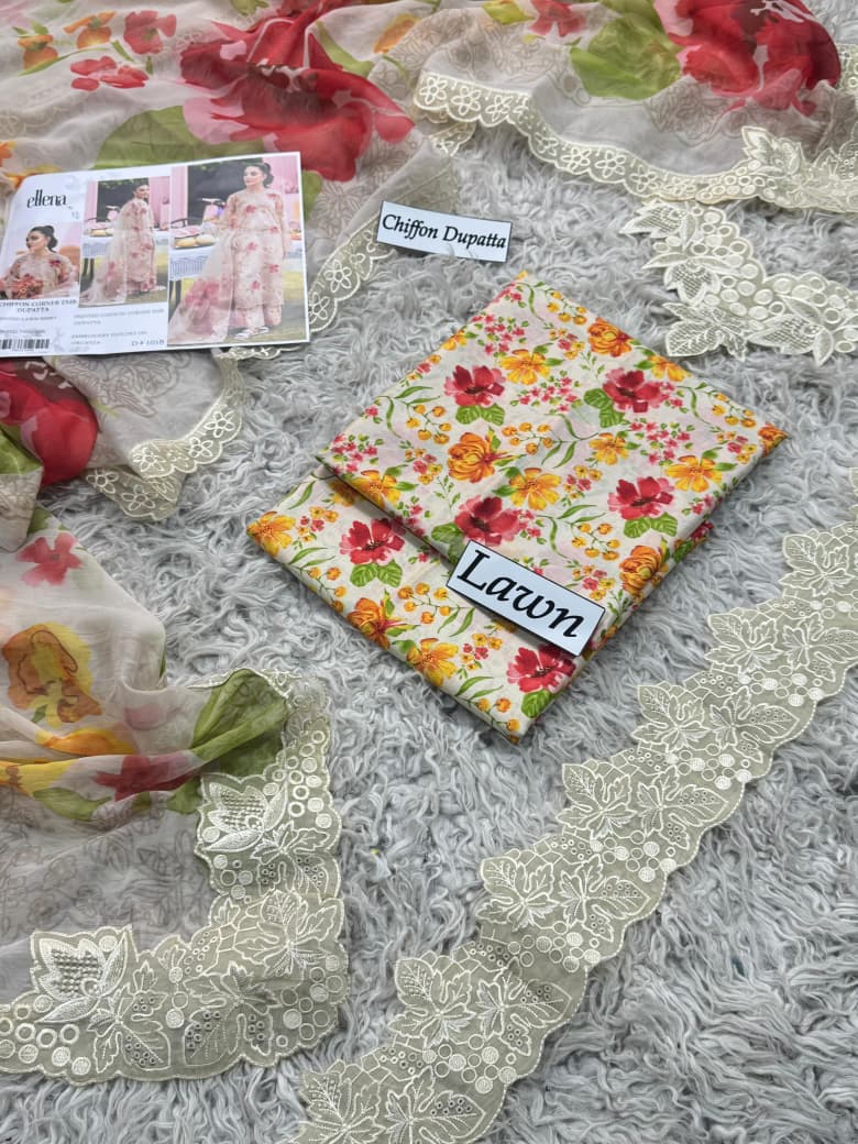 ELNA -LAWN Digital Print 3pc -CHIFFON DUPATTA Patches